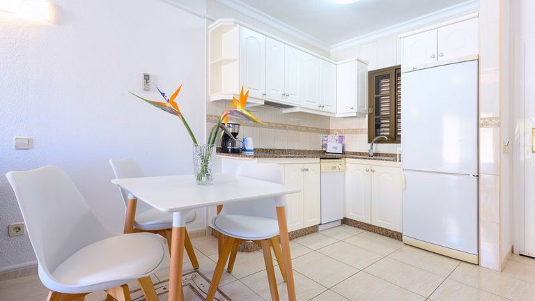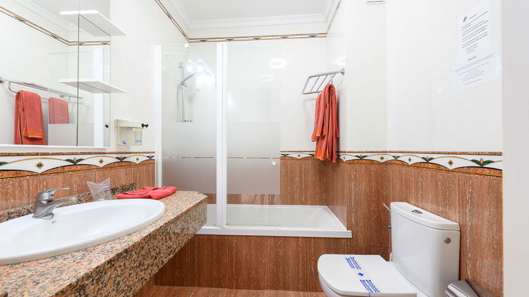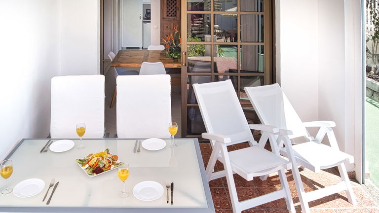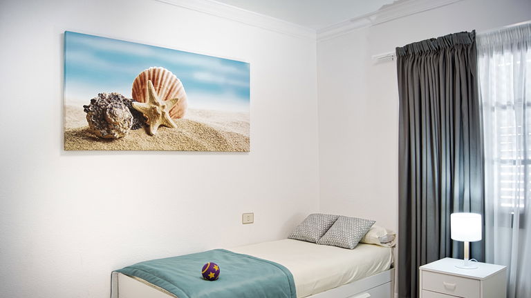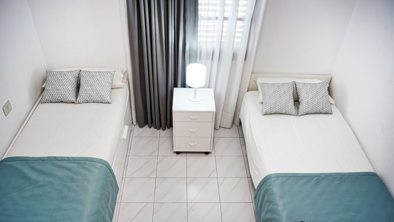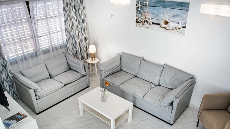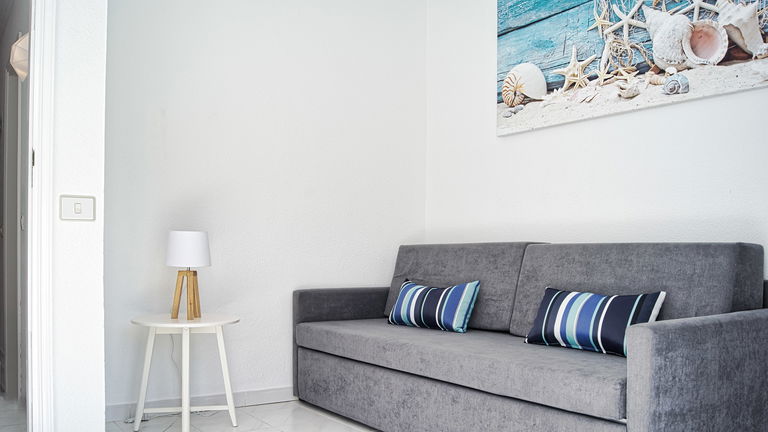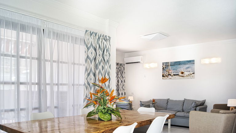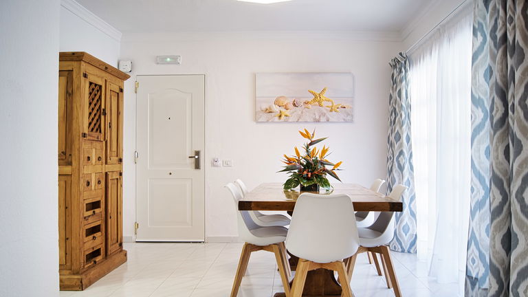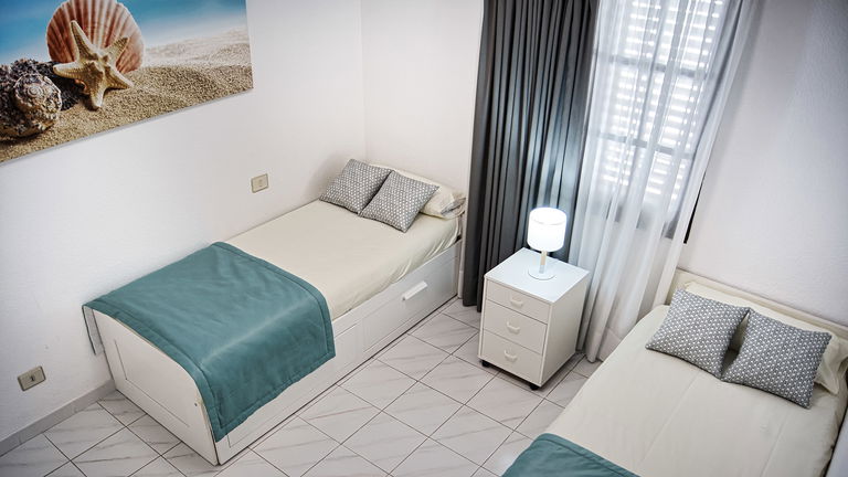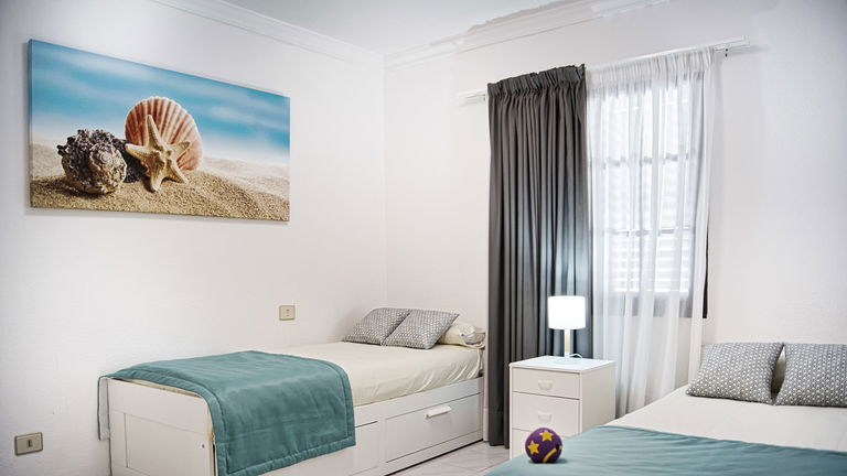 Es perfecto para grupos más grandes, como familias numerosas, parejas y/o amigos. El apartamento familiar es la unión de dos apartamentos, con un gran espacio de 116 metros cuadrados. Consta de una pequeña terraza tanto en el primer como en el segundo piso. La cocina y el baño son nuevos, reformados en el 2016. El apartamento está ubicado al final del complejo.