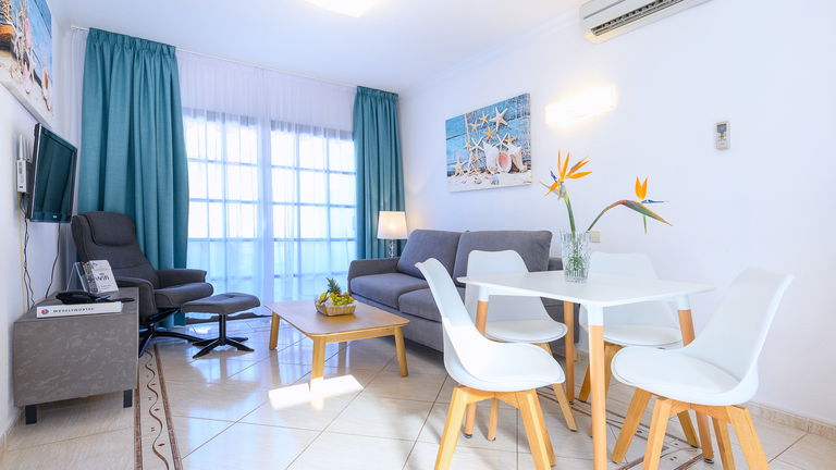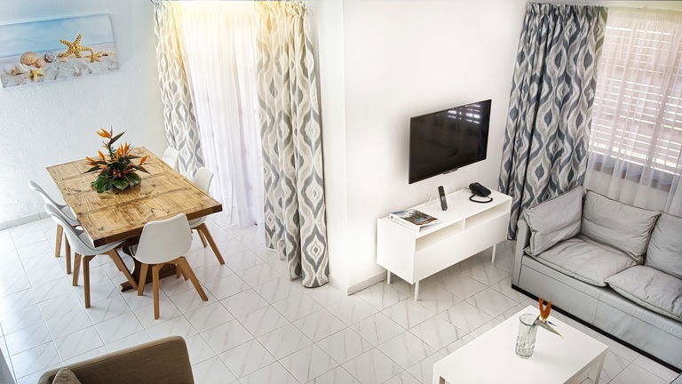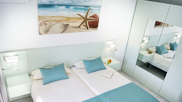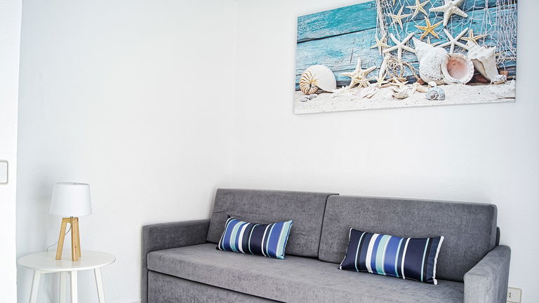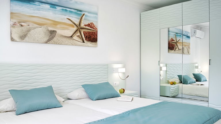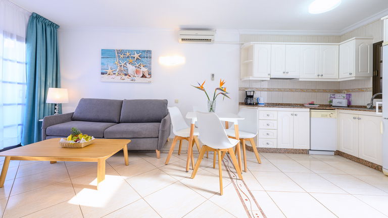 Los apartamentos en Valle Marina son luminosos y acogedores. Son de aprox. 48 m2, y que constan de cocina, salón, dos dormitorios terraza o balcón. Una habitación doble y una habitación individual, con posibilidad de una cama supletoria. El salón tiene una cocina abierta con nevera, placas eléctricas y utensilios de cocina para cuatro personas. Todos los apartamentos disponen de baño privado con inodoro y ducha o bañera, caja fuerte y pantalla plana en el salón. Los apartamentos tienen una terraza privada en la planta baja o un balcón en el segundo piso. Varios apartamentos pueden ser utilizados por usuarios de sillas de ruedas.